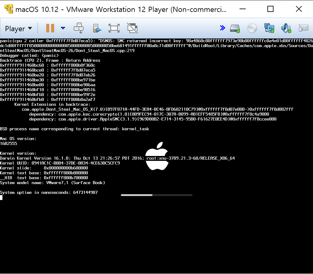 - (가상머신 실행으로 macOS Sierra 설치 시작) 이제는 VMWare Workstation에서 "Play virtual machine" 버튼을 누르면 macOS가 설치 시작됨