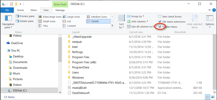 보기 탭을 클릭한 다음 숨긴 항목을 선택합니다.