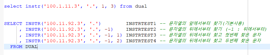 ex) 뒤에서 부터 '.' 찾기 : INSTR('100.11.92.3', '.', -1)