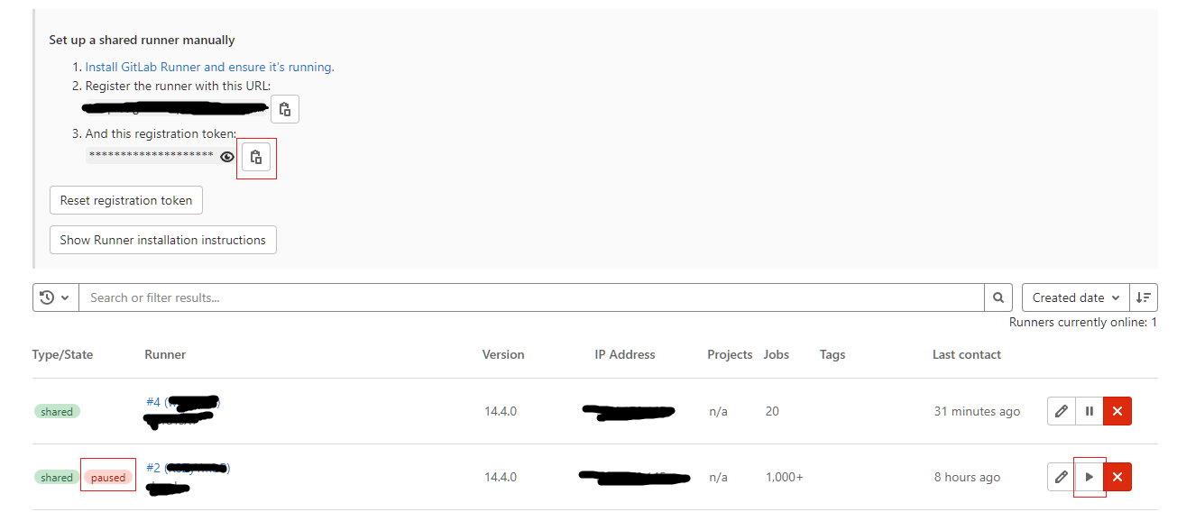 기존 runner는 pause 처리이후 Gitlab Runner 정상처리되는지 확인